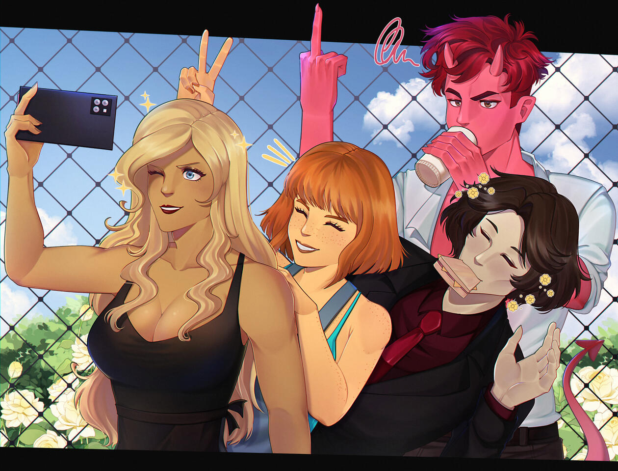 Illustration of Mallorie, Clover, Emris and Davian by @Archetatsu on VGEN